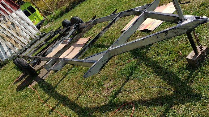 I had been toying with building a tiny house for a while, and finally, my irritation with my neighbors reached a breaking point and I decided I had to move back on my property farther from the road. I wanted to build a house that would easily move from place to place so if I decided I wanted to go to the back of my 45 acres it would be easy to do that. I bought a nice $500 trailer on craigslist and stripped it down to the frame and rust proofed all the rust with POR-15. I wire brushed the frame and then put on several layers of spray paint over the POR-15. If you want your house to last 50 years and the trailer is used and starting to rust you are not going to want to skip this step.